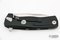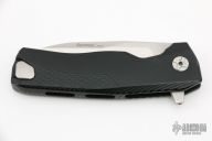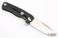 This model of the LionSteel ROK comes with a textured black aluminum handle and a satin finished blade made from M390. The retractable pocket clip is also black.