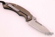This BBR2 by Bastinelli was produced by Lion Steel in Italy, it features a tumble finished D2 blade with notched thumbrest, fullers and dual thumbstuds. Black G-10 and anodized titanium handle with tip up stainless steel clip. Nice detent, lockup and blade seating. Comes with original box. Has a couple light scuffs, otherwise excellent condition.