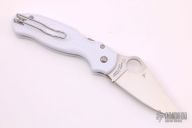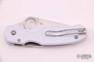 Eric and Sal Glesser designed the Spyderco Para 3 to meet demand for a more compact, sub-3” blade version of the popular USA-made ParaMilitary 2. A great size for EDC in the field or office, this compression lock folder is small but mighty, able to handle your daily cutting tasks with ease. The Lightweight version comes with contoured, high traction Bi-Directional textured FRN handles and a deep carry wire pocket clip. Our GPKNIVES Exclusive comes with high performance, satin-finished CPM REX 45 blade steel, easily customizable White FRN handles and silver hardware/clip.