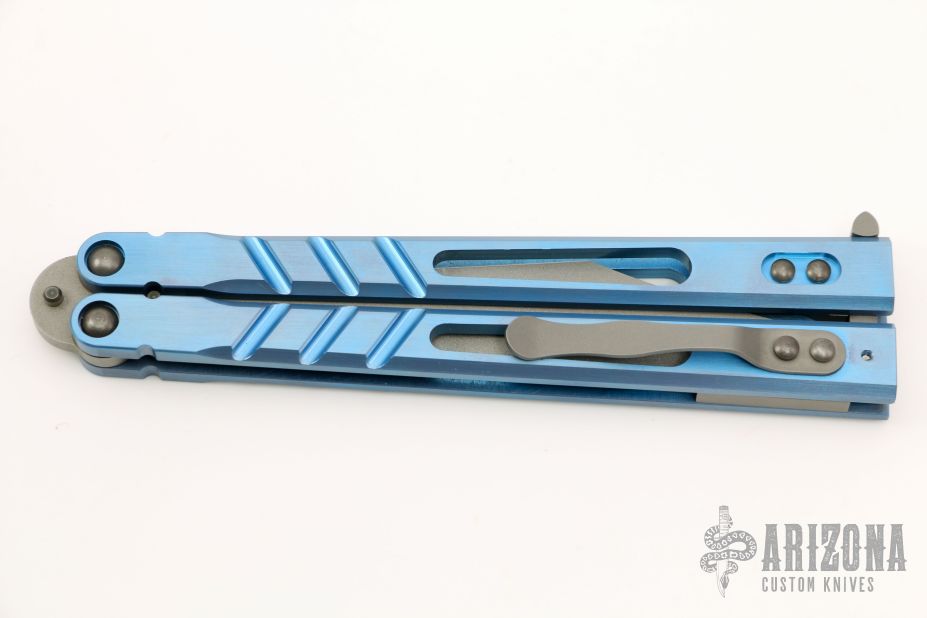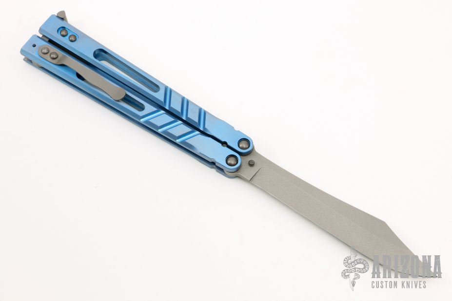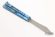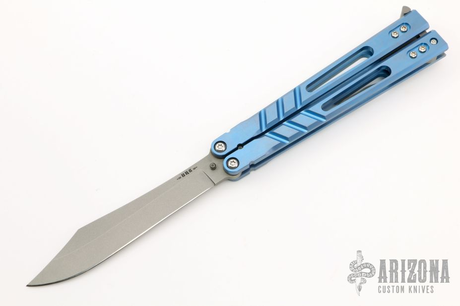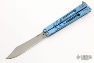 This Alpha Beast Balisong from Blade Runner Systems (BRS) features a bead blast finished clip point blade. The handle has a millled and anodized titanium, has a T-latch. Comes with original zippered case and papers. Excellent condition.