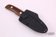 This K-6 Companion by Dozier Knives features a satin finished blade, .133" blade stock and .979" blade depth, full tang construction. The handle has ironwood scales with brass pins and lanyard hole. Comes with a right hand horizontal kydex sheath. New from maker.