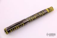 The Pompeii celluloid is exclusively created by Delta and is one of their most popular finishes in yellow and further enhanced with black veins. In gemology circles, the pattern mimics a variety of veined agates, hence Dragon Vein. The pen is fitted with a charcoal-colored metal skeleton cage to keep it all in check.
