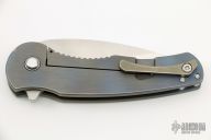 This Stealth flipper from DSK Tactical Knives features a satin finished blade with flipper. The handle has an anodized and milled titanium frame with a raw finish. The pocket clip is also titanium and positioned for tip up carry. Blade is centered when closed, flips well with no wrist action needed, and locks up with no play. Comes with a hard case and COA. Has a few light scratches, otherwise excellent condition.