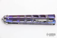 This Gemini-AA by Darrel Ralph features a stonewashed multi-ground blade. The handle has anodized and carved titanium handles with tip up clip and T-Latch. Has a few light scratches, otherwise excellent condition.