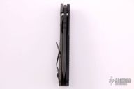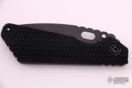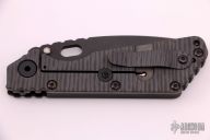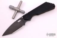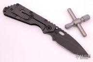 This MSC SMF framelock folder by Mick Strider features a black tanto blade and a dimple pattern black aluminum and flamed titanium frame and tip up titanium clip. Includes Hinderer "Lock Bar Stabilizer" for maximum reverse lock retention. Nice detent, lockup and blade seating. Has a couple light scuffs, otherwise excellent condition. Comes with a custom tool for disassembly.