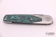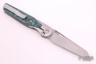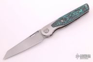 This Cortex by Brown Knives features a clip point stonewashed finish blade with notched thumbrest and flipper. The handle has a milled titanium frame with integral bolsters, inlaid scales, backspacer and tip up clip with hidden screws. Rides on bearings, nice detent, lockup and blade seating. Comes with original box and COA #350. New from Maker.