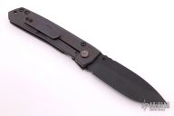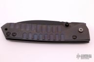 This FIFP EX (Fear is For Prey) by Crusader Forge features a black drop point blade with a single thumbstud.  The handle has an anodized titanium frame with a matching tip up pocket clip.  Light scratches are visible on the blade and frame otherwise the knife is in good condition.