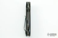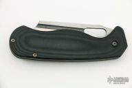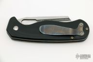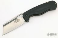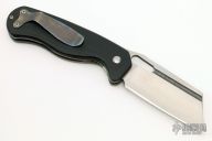 This Micro Butcher Linerlock By Jason Stout features a stonewashed blade with notched thumbrest and a thumbhole. The handle has black G-10 scales, tumbled and anodized titanium liners and tip up clip. Nice detent, lockup and blade seating. Has some scratches on the clip, otherwise excellent condition. Comes with a zippered case.
