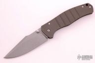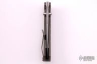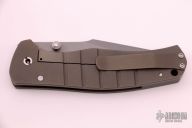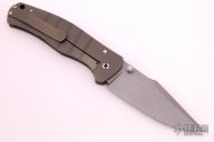 This Framelock Folder by Ray Laconico features a tumble finished blade with dual thumbstuds. The handle has a tumble finished titanium frame with matching tip up clip and a carbon fiber backspacer, has a lanyard hole. Nice detent, lockup and blade seating. Excellent condition.