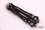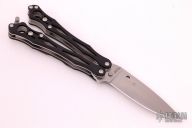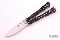 This Spyderfly 2 Balisong by Spyderco has a satin finished blade. Handle is black G10 over stainless steel liners and stainless steel paper-clip style pocket clip. Comes with original box. Excellent condition.