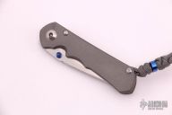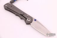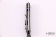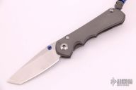 This Small Inkosi from Chris Reeve Knives features a tumble finished tanto style blade with dual anodized thumb studs and notched thumb rest. The handle is comprised of a bead blasted titanium frame over a single barrel spacer with a matching bead blasted titanium tip up clip. Includes original box, comes with a filler tab and screw. Excellent condition.