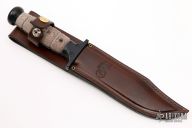 To complete this fixed blade project Rick needed a very high-quality sheath. So once again, he turned to the skilled Amish craftsmen at Woodland Harness to make a very high-quality leather sheath to keep with the historical WWII flair. These sheaths are not only great looking but also built in the Amish tradition of tough workability!
