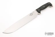 This 20th Anniversary Edition Straight Handle Battle Mistress from the Busse Combat Knife Company features a satin finished blade, .301" blade stock, 1.845" blade depth. Full tang construction with black G-10 scales. Excellent condition. #406 on the blade.