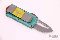 This Microtech Exocet features an apocalyptic finished tanto blade. The handle is comprised of a distressed green aluminum handle and a stainless clip that doubles as a money clip dated 03/2021 S/N 4512. Comes with original box and papers. Excellent Condition.
