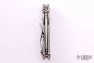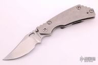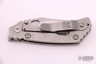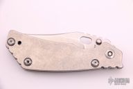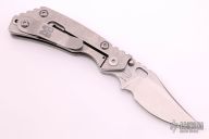 This PT Persian by Mick Strider features a stonewashed blade with notched thumbrest and thumbhole. The handle has a stonewash finished titanium frame with matching tip up clip. Excellent condition.