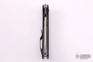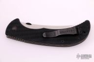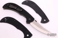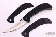 The Emerson P-Tac Persian features an upswept stonewashed blade, black G10 scales over aerospace grade titanium liners. Notches on thumbrest, lock, and rear of handle. #1339.  Excellent condition. Comes with a second set of black G-10 scales.
