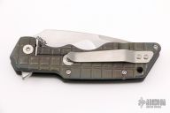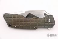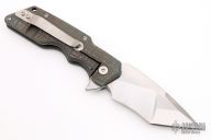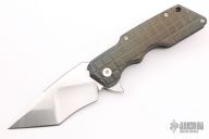 This Mark 1 Flipper by A2D Mercantile features a satin finished multi-gound blade with flipper. The handle has bead blasted and frag pattern milled titanium frame, satin  titanium tip up clip. Nice detent, lockup and blade seating. Excellent condition. Comes with a cloth pouch.