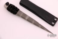 In 1988, he began making specialized knives for use by the military. This turned out to be fortunate turn of events, both for Mick and for the knife using world at large. Mick’s approach was to not get burdened by the weight of past designs. He started with a tabula rasa, a clean slate, informed only by his own experiences and knowledge of what a soldier needed in a knife. The knives he made didn’t look like the hunter-inspired knives seen in most PXs; instead they were almost brutish in their functionality: beefy, solid, and with unbreakable ¼” stock full tangs. These knives were the first indication of his innovative approach: in addition to their utilitarian design, the knives carried a subdued finish and subdued sheaths. No one carrying a Strider knife was going to be spotted because of sunlight glinting off of polished steel or a glossy leather sheath. Soldiers, policemen, and other men going into harm’s way couldn’t buy them fast enough. Mick sampled some good ideas, but made them great. For instance, he was not the first to wrap a knife handle with paracord, but he was the first to do it in a way that was tough enough for sustained infantry use. His knife line grew over the following years to include different varieties of fixed blades, all distinctive and many with specialized uses. But constant in all of them was a disregard for convention, and a desire to try new ideas. An example of this was the Ajax – it featured a very wide blade surface clearly designed to inflict damage. It drew on the weapons carried by Roman legionnaires, yet was modern and usable in the 21stCentury battlefield. Mick also worked on his technical skills, always striving to become better at the physical craft. At the 2002 Blade Show, a group of the best tactical knifemakers in the country decided to compete with each other to produce the most innovative and interesting fixed “battle blade” at the show. Mick’s entry, an incredible integral knife made out of ½” titanium stock with a zippered composite blade, gorgeous handles, and integral guard was the unanimous winner, and effectively retired the competition.