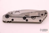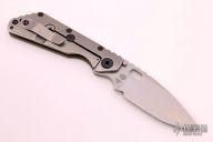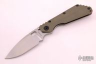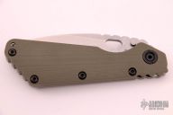 This SMF CC by Strider Knives features a stonewashed blade and smooth green G-10 and stonewashed titanium handle and matching tip up titanium clip. Notches on thumbrest, rear of handle, and early lockup. Includes Hinderer "Lock Bar Stabilizer" for maximum reverse lock retention. Excellent condition.