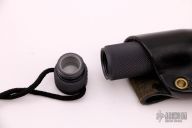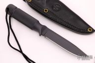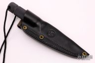 This Mountaineer I by Chris Reeve features a clip point blade with swedge and notched thumbrest, .182" blade stock and 0.857" blade depth. The handle is comprised of one-piece hollow construction with threaded/removable butt cap. Lanyard and lanyard hole in pommel. Includes leather sheath with belt loop. Excellent condition. Comes with a zippered case.