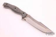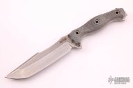 This P&L Statement by Busse features a Competition finished clip point blade with .213" blade stock and 1.409" blade depth, full tang construction. The handle has black canvas micarta scales with a lanyard hole at the butt. Excellent condition.