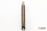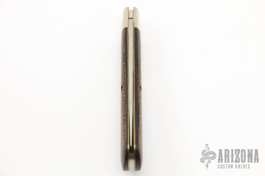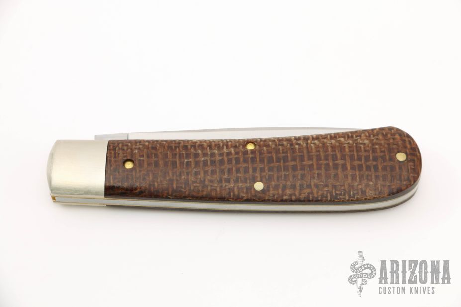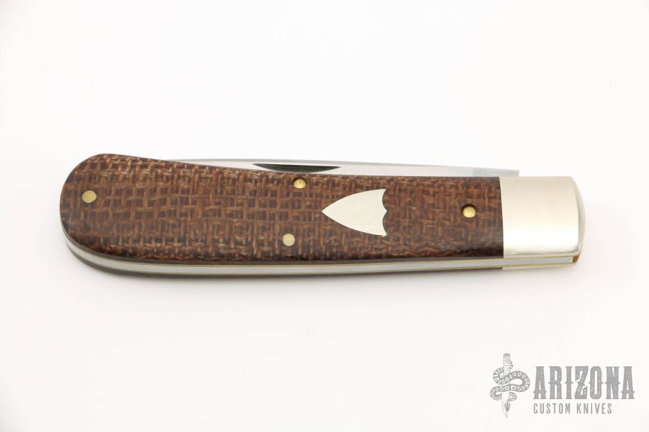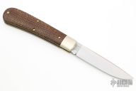 This Mustang slipjoint by Great Eastern Cutlery features a high satin polished clip point blade with nail nick. The handle has nickel silver pinched bolsters and escutcheon, micarta covers, brass liners and pins. Has half stop. Comes with original wax paper and leather slip. Excellent condition.