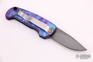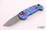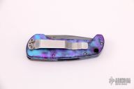 This Sidekick by Protech knives features a mirror polish black coated clip point blade with anodized aluminum handle, stainless release button and clip positioned for tip up carry. Marked #008 on the blade. Has some light scuffs and scratches, otherwise excellent condition.
