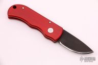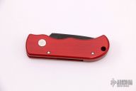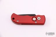 This is a Runt by Pro-Tech featuring an aluminum handle and a black coated drop point blade. It has coil spring action. California legal. Marked #008 on the blade, pre-logo markings. Has some light scuffs and scratches, and some marring on the hardware. Great condition.