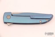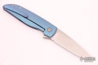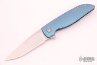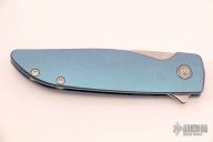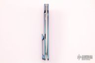 This Rask by John Grimsmo of Grimsmo Knives features a stonewash finished blade with notched flipper. The handle has a cross hatch milled and tumbled titanium frame with matching tip up clip that has hidden screws, titanium barrel spacers and screws. Numbered #764 on the spine of the blade. Includes original box and COA dated November 30, 2021. Excellent condition.