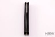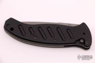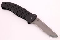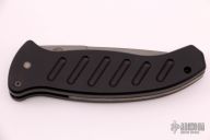 This Combat Auto by Woodard Knives has a bead blast finished, partially serrated blade. Handle is black aluminum with milled contours and lanyard hole, has black linen micarta backspacer. Has a couple marks, otherwise excellent condition.