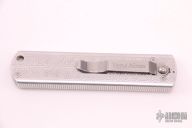 This Triple Action by Cold Steel features a double edged blade with single thumbstud. The handle has an aluminum frame that houses the blade. Has a tip down pocket clip. Has a couple marks, otherwise excellent condition.