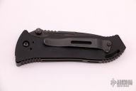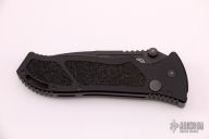 The ATFK Auto (Advanced Tactical Folding Knife) by Masters of Defense is built to meet the most rigorous demands. The blade is cryogenically hardened and ground for strength and excellent penetration capabilities. The handle design provides superior ergonomics and with the Wing Walk (grit)inserts, assures a firm grip. Black blade and black aluminum handle with non-slip inserts and tip up or down reversible clip. Has some scuffs/scratches, has been resharpened, otherwise good condition. RARE! Comes with original box, sheath and papers.
