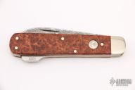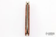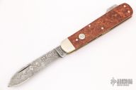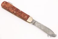 This Lockback by Boker features Meteorite Damascas (Gibeon, Namibia) blade with nail nick. Numbered 333. Amboyna burl scales, nickel silver bolsters, brass liners. Excellent condition in original wooden box with papers.