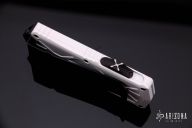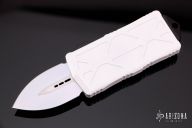 This Microtech Exocet features a 204p white finish dagger shape blade. The handle has a white aluminum handles and a black stainless clip that doubles as a money clip dated 12/2021 S/N 2841. Comes with original box and papers. Excellent condition.