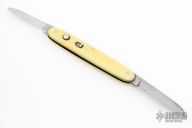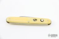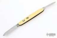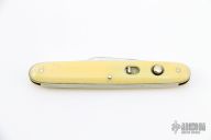 This double auto by Schrade was made between 1909-1916, it features two blades both with their own push button and safety. The handle has acrylic/celluloid scales, brass liners and steel backspacer. Has some light scratches, otherwise excellent condition for its age. US Patents DEC 21,09, Sept 13,10, June 6,16 on the blade