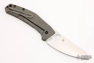 This C211TIP Spydie Chef by Spyderco features a satin finished drop point blade with thumbhole. The handle is comprised of a blasted and tumbled titanium frame over barrel spacers. The tip up clip is reversible for left or right hand carry. Includes original box and papers. Excellent condition.