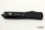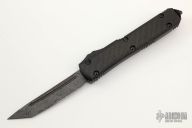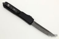 The Ultratech is a precision-made, out-the-front tactical knife. Has a Damascus tanto blade with fuller. Carbon fiber top and black aluminum handle with black ringed hardware, tip down stainless steel clip and nickel boron internals. S/N#021, Dated 10/2021Comes with original box and papers. Excellent condition.