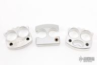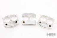 3 sets of knuckles by unknown makers. All are aluminum and one has a mosaic pin lanyard hole. One is .623" thick and the other two are .500" thick. Has a few light scratches, otherwise excellent condition.