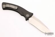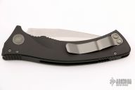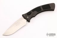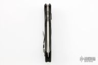 This Amphibian automatic by Microtech Knives has a bead blast finished blade with notched thumbramp. The handle is comprised of black aluminum with non-slip inlays, stainless steel clip positioned for tip down carry, and lanyard hole at the pommel. Serial number 0482 and dated 01/2002. Includes original sheath, box, and papers. Excellent condition.