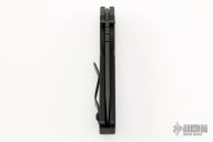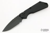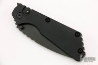This Pro-Strider SNG by Pro-Tech and Strider Knives features a black blade with notched thumbrest. The handle has a black aluminum frame with black hardware and black stainless steel tip up clip.  There is a tritium lantern inlaid into the push button.  Comes with original box and papers. Excellent condition.