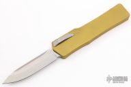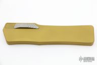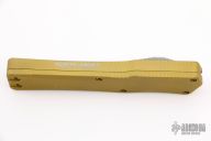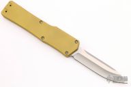 This Cleric OTF by Heretic Knives features a stonewashed blade. The handle has a tan aluminum frame with a stepped and bead blasted stainless steel thumbslide and bead blasted stainless steel tip down clip. #00456. NO CLIP. Comes with original box and soft case. Has some light scuffs, otherwise excellent condition.