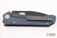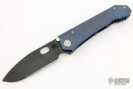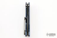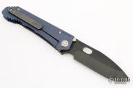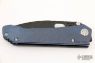 This 187 DPT Drop Point by Medford Knife and Tool, features a black drop point blade with notched thumbrest and thumbhole. The handle has a stonewashed anodized titanium scale, frame and stone wash clip. Nice blade seating, detent and lockup. Comes with original box, soft pouch, and tag. Excellent condition.