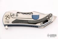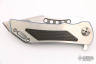 This Dominator V5 by Darrel Ralph features a clip point tanto blade with swedge, notched thumb ramp and flipper. The handle is comprised of titanium with a carbon fiber inlay on the scale and titanium lockside with a Damascus tip up clip and titanium backspacer. Carbon fiber inlay on b side, and lanyard hole in pommel. Includes original zippered case and COA dated 01/21. Has a couple very light scratches, otherwise excellent Condition.