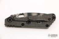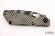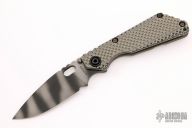 This SNG framelock folder by Mick Strider features a tiger stripe blade and a dimple pattern grip G-10 and flamed titanium frame and tip up titanium clip. Includes a "Lock Bar Stabilizer" for maximum reverse lock retention. Nice detent, lockup and blade seating. New from Maker!