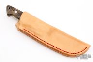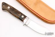 This Loveless Style Nessmuk by Mitch Jenkins features a mirror polished blade, mirror polished 416 stainless steel fittings, and bark mammoth ivory scales with red liners, .206" blade thickness and 1.198" blade depth, full tapered tang. Excellent fit and finish. Comes with brown leather sheath. New from maker at the 2022 LVCKS.