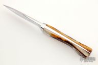 I'm very fortunate to have met Steve Johnson at an early age. He was my Scoutmaster and soon I was sweeping out his shop, and later cutting out blanks and doing some grinding. I made my first knife in my teens with Steve's help and although there have been periods outside the shop like a church mission, college, and grad school I've stayed as close as I could to Steve and knifemaking. I'm also very lucky to be friends with John Young. We all live within a few miles of each other and the help and support I receive from these two great makers certainly helps keep me going. I'm in the shop everyday trying to make the best possible handcrafted working knives after the traditions established by Bob Loveless and Steve Johnson. My knives are bench-made using my hands and my eyes, that’s it. I do my own heat-treatment, and sheath making as well if sole-authorship matter to you. It’s a very special feeling creating something with your hands that has purpose and meaning.