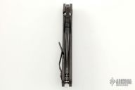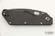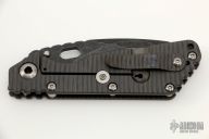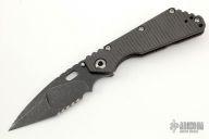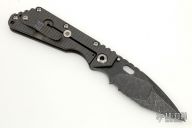 This Mick Strider custom SMF framelock folder has a Nightmare ground tanto partially serrated blade with notched thumbrest and thumbhole. The handle has a anodized titanium frame with laser engraved titanium clip. Includes Lock Bar Stabilizer for maximum reverse lock retention. Nice lockup, blade seating and detent. Comes with zippered case. New from maker!