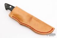 This Loveless Style Gut Hook by Mitch Jenkins features a mirror polished blade with gut hook, mirror polished 416 stainless steel fittings, and cape buffalo scales with red liners, .132" blade thickness and .983" blade depth, full tapered tang. Excellent fit and finish. Comes with brown leather sheath. New from maker at the 2022 LVCKS.