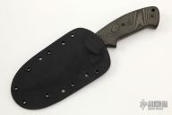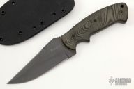 This limited edition Kasper fighter by Crawford Knives features a black bead blasted blade with notched thumbrest, .142" blade stock and 1.634" blade depth, full tang construction. The handle has black linen micarta scales. Comes with kydex sheath. Numbered 33 of 50. Great feel in hand. Has a few light scuffs, otherwise excellent condition.
