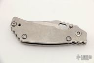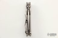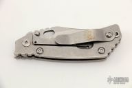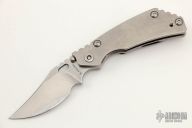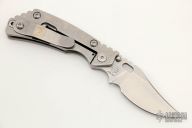 This PT Persian by Mick Strider features a stonewashed blade with notched thumbrest and thumbhole. The handle has a stonewash finished titanium frame with matching tip up clip. Excellent condition.